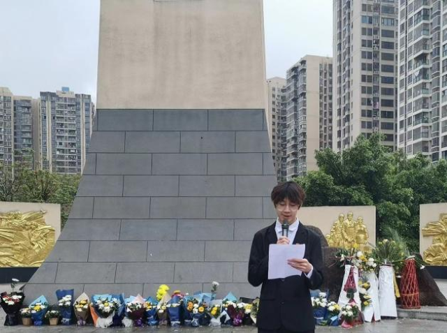 活动中大家怀着无比崇敬的心情,在巍然屹立的革命烈士纪念碑前进行悼念仪式,进行着简短的悼念仪式,向英烈们默哀三分钟,气氛庄严而凝重。